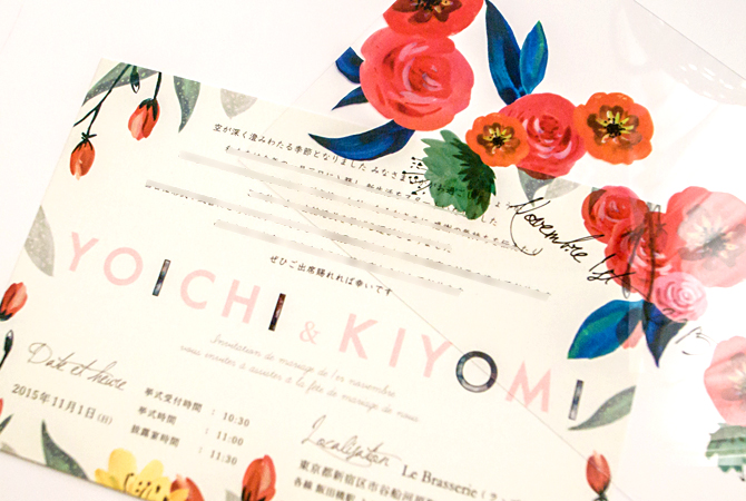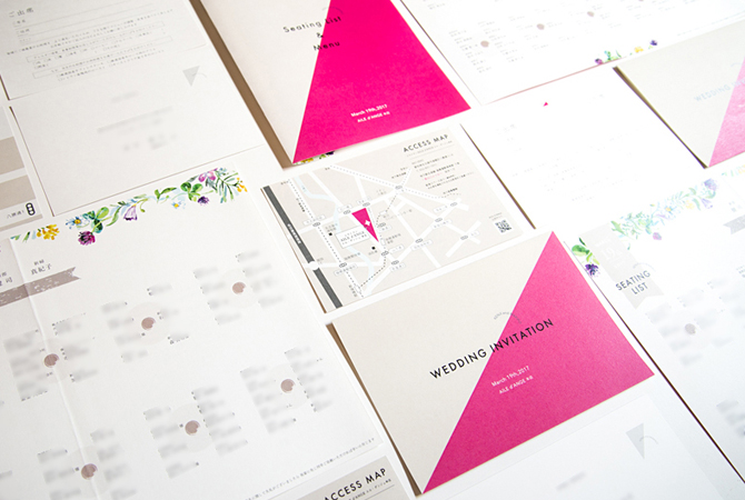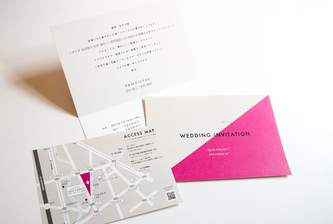 こんなふうに! 自分のサイトなので、私はこの配色が大好きです。グレージュとビビットなピンク。 こんな風に気に入ってくださる方がいて、とてもうれしかったー! 印刷でもピンクの彩度を出来るだけ再現できるよう、気をつけてCMYKのパーセンテージを指定しました。 (特色なしでの印刷です。) portfolio.0116 作例のフィルム素材の招待状をベースに、新しいデザインもつくりました。